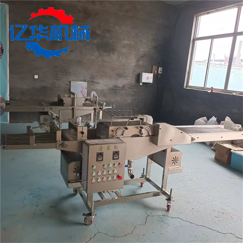 產(chǎn)品由上、下網(wǎng)帶夾附,完全浸入漿液內(nèi)充分裹漿。