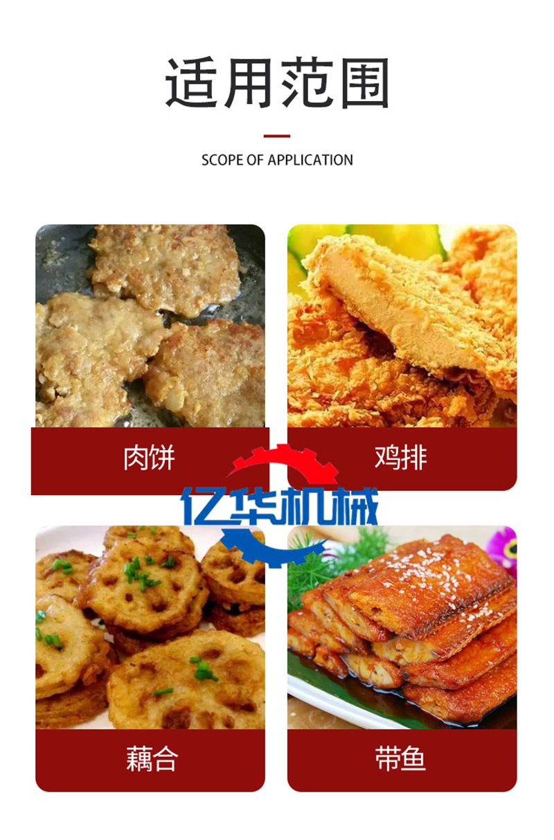 全自動(dòng)上漿機(jī) 循環(huán)漿液肉餅浸漿機(jī) 變頻調(diào)速雞排魚排掛糊裹糠設(shè)備特點(diǎn):