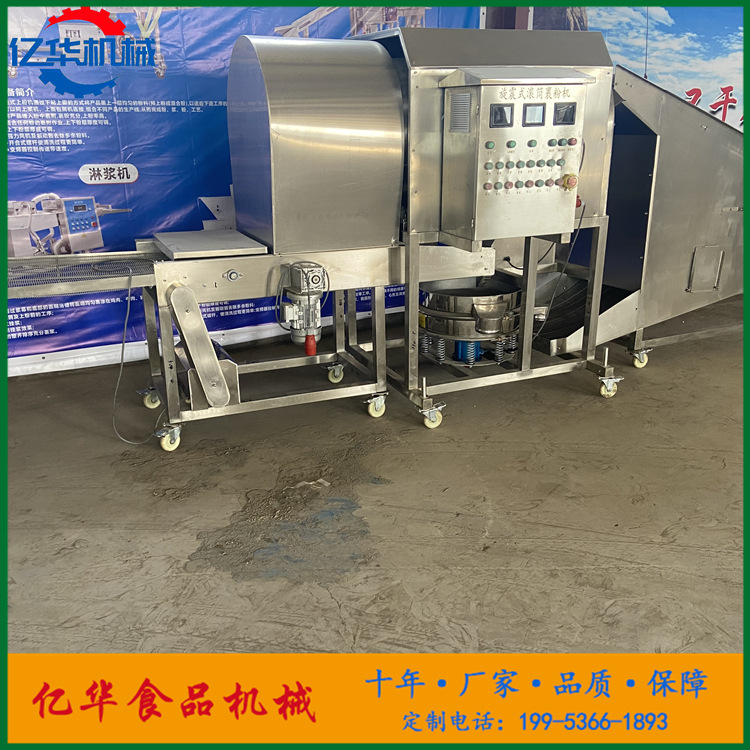 諸城億華機(jī)械有限公司專業(yè)研發(fā)制造的新款旋震式滾筒裹粉機(jī)規(guī)避了傳統(tǒng)上粉機(jī)的很多缺點(diǎn),上粉效果非常好,沒有一點(diǎn)粉塵,裹粉更均勻,設(shè)備在運(yùn)行的過程中能自動(dòng)過濾篩掉產(chǎn)生的面團(tuán),裹出來的產(chǎn)品外觀更好看,設(shè)備運(yùn)行更順暢,為客戶增加了產(chǎn)量的同時(shí)產(chǎn)品質(zhì)量也提高了一大截,從而提高了客戶產(chǎn)品的市場(chǎng)競(jìng)爭(zhēng)力。
