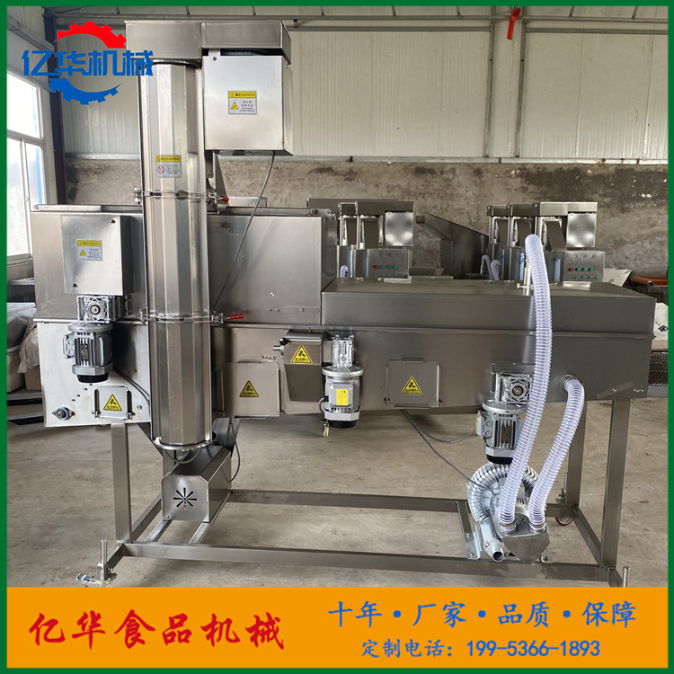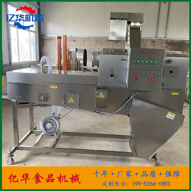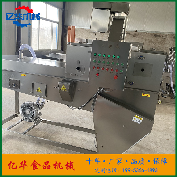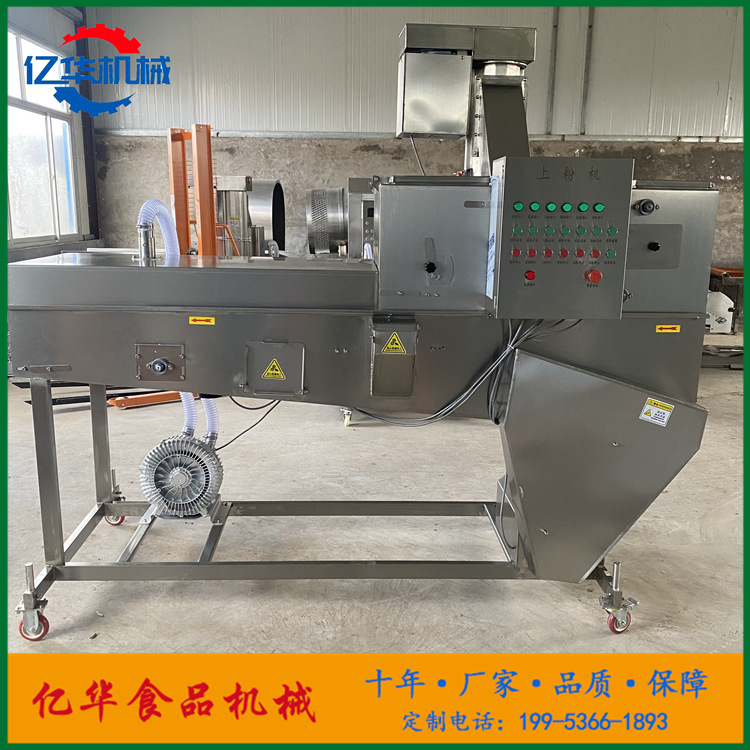 諸城億華機械有限公司研發(fā)制造的平行上粉機規(guī)避了傳統(tǒng)上粉機的很多缺點,上粉效果非常好,沒有一點粉塵,裹粉更均勻,設(shè)備在運行的過程中能自動過濾篩掉產(chǎn)生的面團,裹出來的產(chǎn)品外觀更好看,設(shè)備運行更順暢,為客戶增加了產(chǎn)量的同時產(chǎn)品質(zhì)量也提高了一大截,從而提高了客戶產(chǎn)品的市場競爭力。裹粉主要是用來針對油炸產(chǎn)品進行處理的外裹層。使用裹粉或炸粉將肉類或蔬菜類裹上然后油炸,可以賦予油炸品不同的風(fēng)味,保持其原有風(fēng)味不流失,保持其水份,避免直接將肉或蔬菜炸焦。裹粉機是產(chǎn)品通過傳送網(wǎng)帶時,被覆蓋粉的傳送帶和上面撒落的粉將產(chǎn)品均勻的裹涂上一層預(yù)上粉或混合粉,以適應(yīng)下道工序的要求,網(wǎng)帶式雞肉餅裹粉機可以同上漿機、上面包屑機連接,組成不同產(chǎn)品的生產(chǎn)線。從而實現(xiàn)粉、漿、粉、漿、粉及漿、粉、漿、粉工藝。