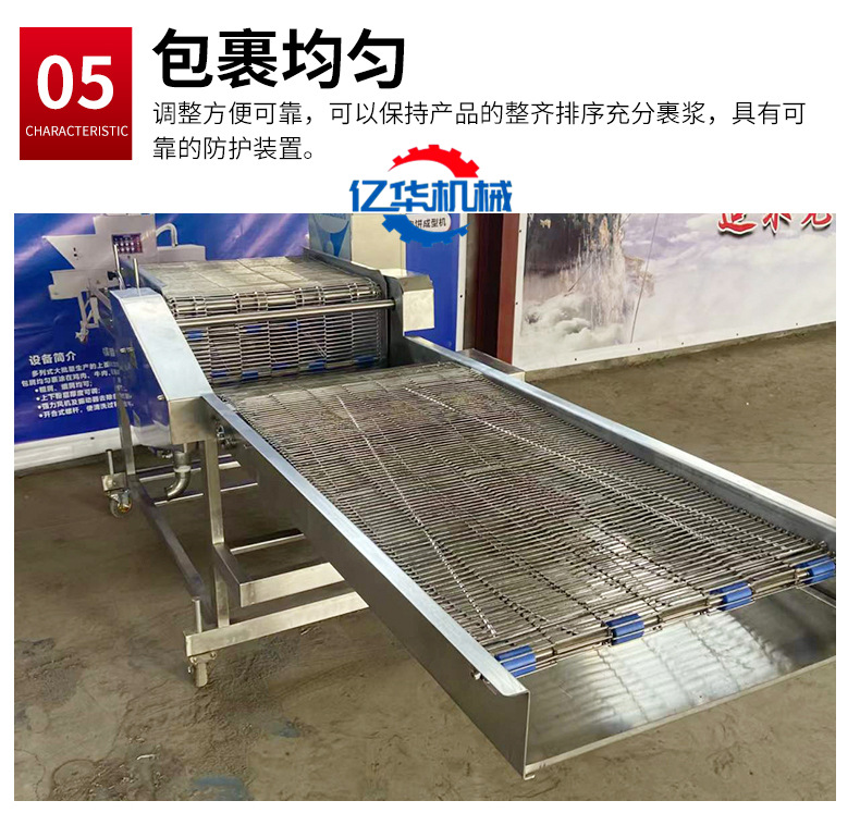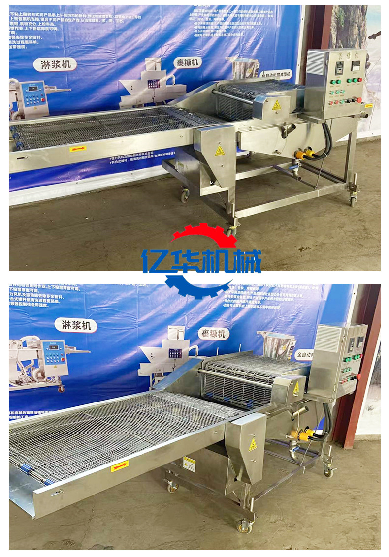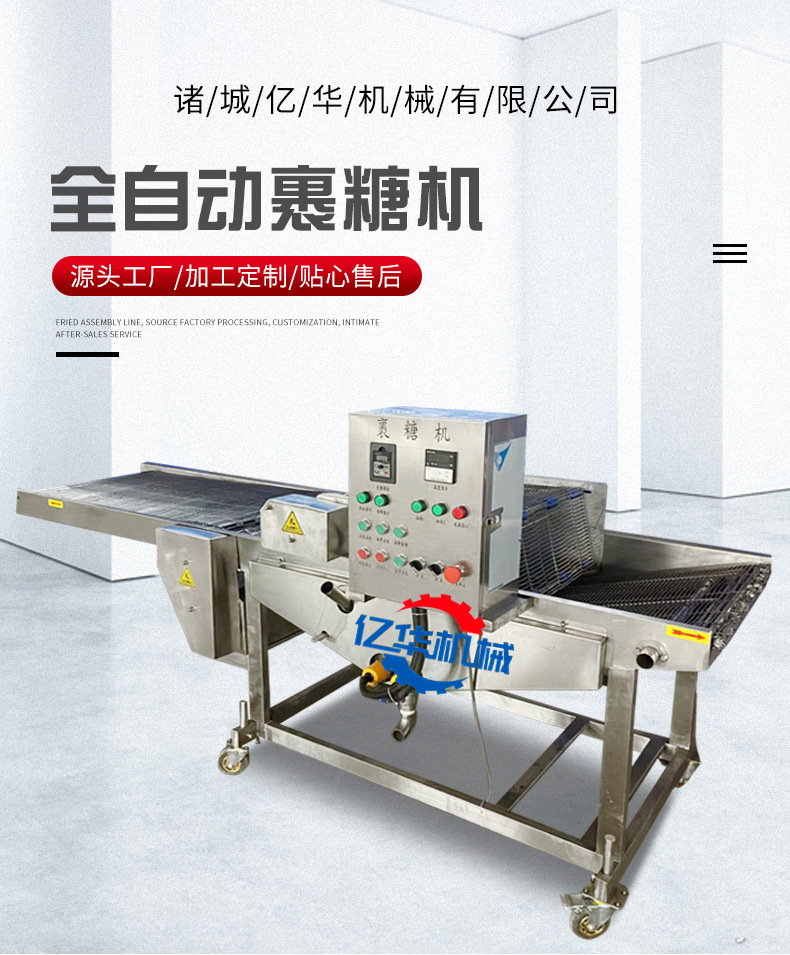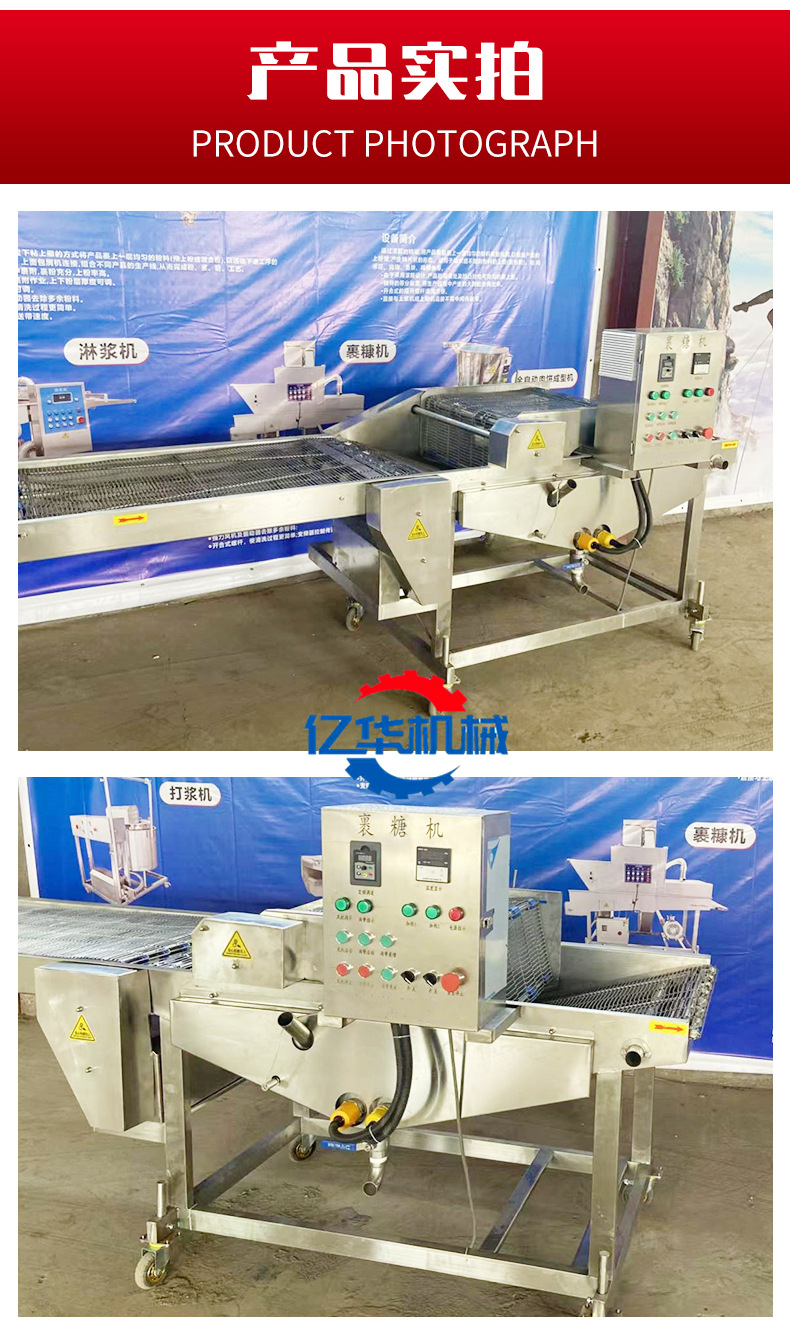 億華機械有限公司研發(fā)制造的裹糖機設備外部帶有夾層,夾層里面放入水或者導熱油來給糖漿進行保溫,溫度可控制在常溫~300度。出料口有風刀可吹走產(chǎn)品表面多余漿液。設備整體采用快裝設計,清洗方便;漿液輸送泵對漿液輸送粘貼小,對漿液的粘度破壞程度??;調(diào)整方便可靠;可以保持產(chǎn)品的整齊排序充分裹漿;具有可靠的安全防護裝置;可以與風干線,冷卻線、上粉機、油炸機、速凍線等設備對接使用,從而實現(xiàn)連續(xù)生產(chǎn);整機采用不銹鋼制造,設計新穎、結(jié)構(gòu)合理、性能可靠。經(jīng)過公司技術(shù)人員的不斷創(chuàng)新,我們的裹糖機已經(jīng)是同行業(yè)技術(shù)領(lǐng)先的一款上糖設備,在市場上享有很高的聲譽,受到了廣大客戶的青睞,是我們公司的熱銷爆品。