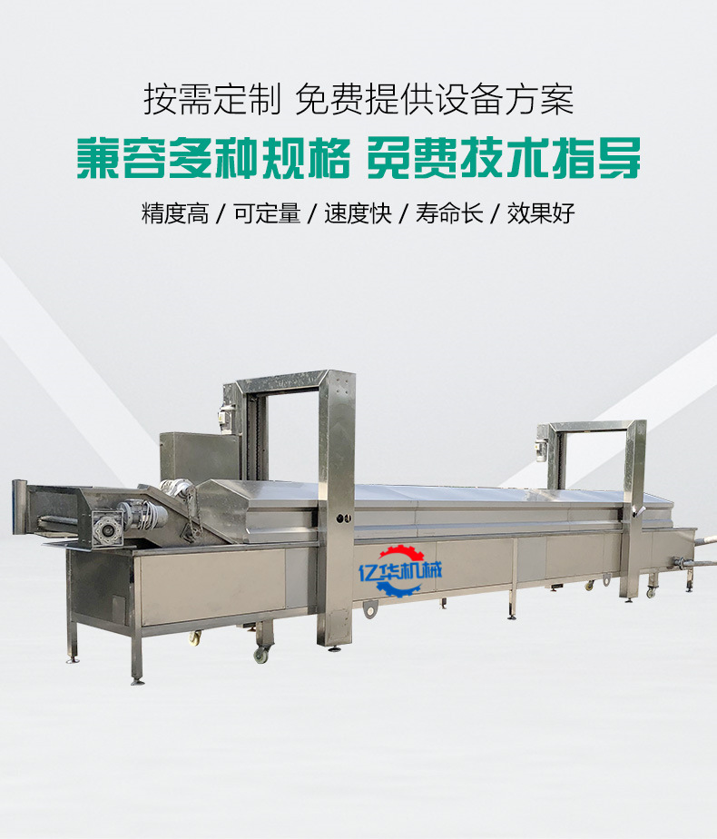 億華燃?xì)?、電加熱全自?dòng)油炸機(jī)全不銹鋼加工制造,油炸溫度自控,可根據(jù)炸制產(chǎn)品不同設(shè)置溫度,炸制時(shí)間可調(diào)根據(jù)產(chǎn)品炸制要求設(shè)置時(shí)間;獨(dú)特的產(chǎn)品輸送系統(tǒng)、排渣系統(tǒng)、油循環(huán)系統(tǒng)、排煙系統(tǒng)、電控系統(tǒng)等組成。采用網(wǎng)帶輸送產(chǎn)品變頻或無(wú)級(jí)調(diào)速。廣泛應(yīng)用于肉制品,肉塊、炸雞翅、雞米花、水產(chǎn)、蔬菜、面食等油炸食品加工。